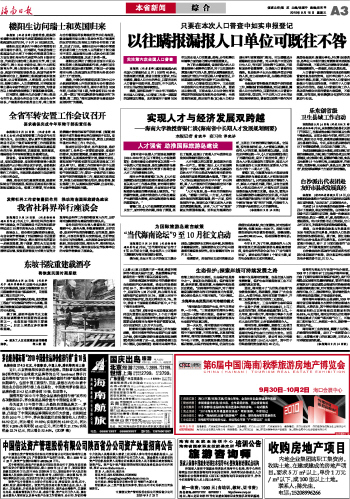 海南日报 本省新闻 003 2010-09-151 2010年09月15日 星期三