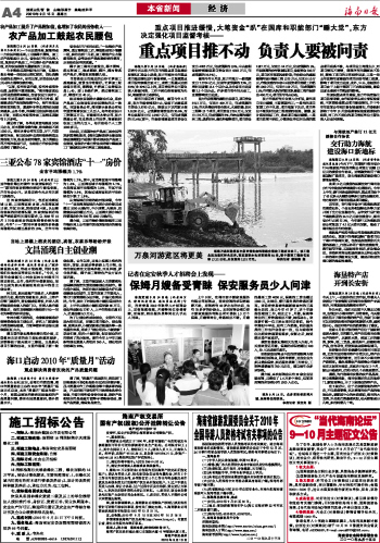 海南日报 本省新闻 004 2010-09-151 2010年09月15日 星期三