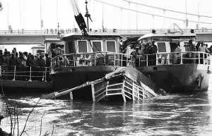 9月14日,在苏丹首都喀土穆,救援人员将沉船吊出水面。一艘小型渡轮因故障沉没,导致5人死亡,另有11人获救。 新华社/法新