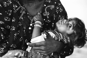 9月15日,在巴基斯坦南部受洪灾最严重的特达地区马克里镇,一名出现脱水症状的小女孩由母亲带着来到中国国际救援队的医疗点接受诊治。 巴基斯坦政府近日发布的最新报告说,本次持续一个多月的特大洪灾已导致全国至少1710人死亡,2632人受伤,超过193万公顷的国土面积被淹。 新华社记者 周磊 摄