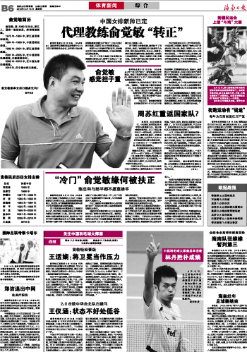 海南日报 体育新闻 综 合 014 2010-09-161 2010年09月16日 星期四