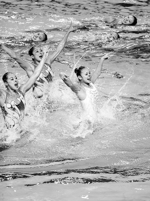 9月16日,在常熟市举行的第12届世界杯花样游泳比赛自由组合决赛中,中国队以总分97.200分夺得亚军。这是中国花游队首获世界杯奖牌。 新华社发