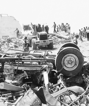 | 9月17日,在斯里兰卡东部拜蒂克洛镇,人们清理爆炸后的废墟。