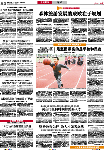 海南日报 本省新闻时 政 002 2010-09-181 2010年09月18日 星期六