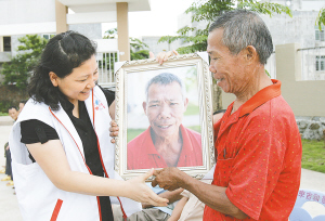9月18日,海口市遵谭镇敬老院、新坡镇仁里五保之家的老人以及一些低保户收到了一份特殊的中秋节礼物:除了月饼和常用药品外,还有一张老人的笑脸照片。 此次活动由共青团海口市委、海南省志愿者协会、海口市志愿者协会联合海南生命人寿等企业组织。组织者表示,计划为近1000名老人拍摄制作笑脸照片。 文/本报记者 彭青林 图/本报记者 林萌 摄