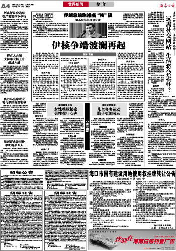 海南日报 世界新闻 004 2010-09-191 2010年09月19日 星期日