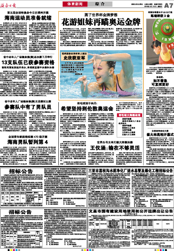 海南日报 体育新闻 007 2010-09-191 2010年09月19日 星期日