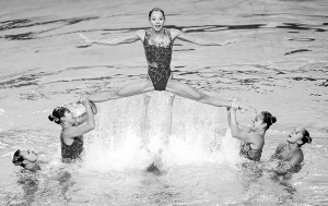 9月19日,在江苏省常熟市举行的第十二届世界杯花样游泳比赛集体项目决赛中,中国队以总分96.500分获得亚军。 新华社发
