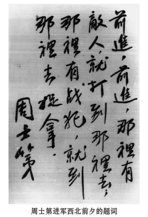 | 周士第进军西北前夕的题词 |