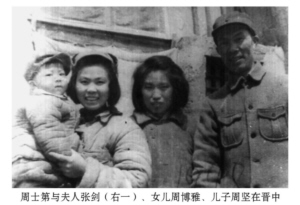 | 周士第(右一)与夫人张剑、女儿周博雅、儿子周坚在晋中。 |