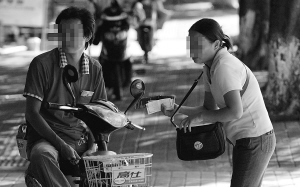 “乙肝女”哈尔滨闹市“征人吃饭”