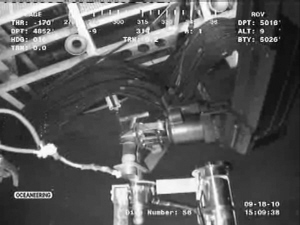 这张9月18日的视频截图显示,英国石油公司的远程控制设备在墨西哥湾漏油井工作。 英国石油公司18日宣布,已完成从底部灌注水泥封堵墨西哥湾漏油井的工作,目前水泥已凝固。如果进一步测试显示无新的漏油点,即可正式宣布漏油井被彻底封堵。 新华社发