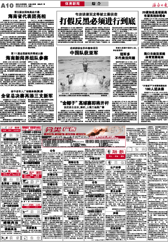 海南日报 体育新闻 010 2010-09-201 2010年09月20日 星期一