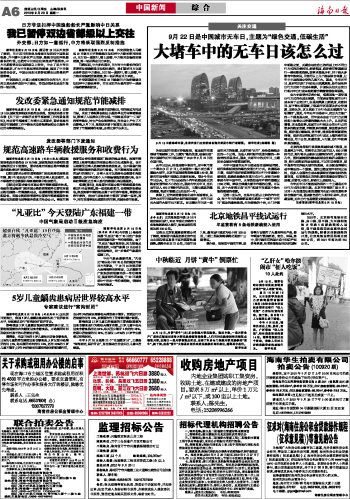 海南日报 中国新闻 006 2010-09-201 2010年09月20日 星期一