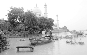 9月19日,由于上游多场降雨和堤坝裂缝,位于阿格拉市郊亚穆纳河南岸的印度著名古迹泰姬陵处于洪水威胁中。 印度政府官员20日说,北方邦部分地区最近两天连降暴雨,引发山体滑坡,致使至少47人丧生。阿尔莫拉地区3座村庄19日被崩塌的山体掩埋,至少24人死亡。 新华社发