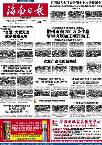 海南日报报业集团旗下媒体: 海南日报 | 南国都市报 | 南海网 | 南岛晚报 | 证券导报 加入收藏 | 设为首页