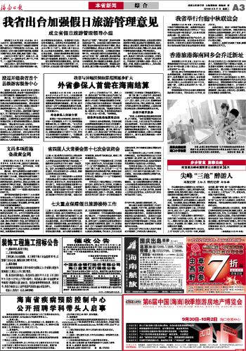 海南日报 本省新闻 003 2010-09-211 2010年09月21日 星期二