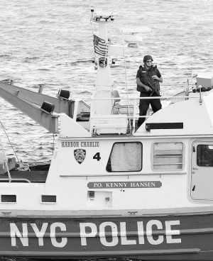 | 9月20日,警察在美国纽约联合国总部东侧的纽约东河上警戒。