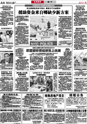 海南日报 世界新闻 006 2010-09-221 2010年09月22日 星期三