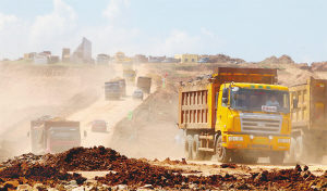 公堂上村外,一个数百台机械同时轰鸣的超大型工地被尘土包裹着,与安静的村庄形成鲜明对比。向前看,工地从村子到海边纵伸上千米;向两边看,不见边际。烟尘中,运输车颠簸着,穿梭着,挖掘机弯着细长的手臂抓起一把把泥土倾倒在运输车里。