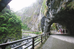 当我们乘坐的旅游大巴车进入太鲁阁大峡谷中最险峻也最值得一看的九曲洞峡谷时,我惊奇地看到,进出九曲洞的游客个个头顶安全帽。导游说,前几年的台湾大地震,太鲁阁大峡谷不少山体岩石松动,山上经常有细小石子滚落下来,为了避免伤及游客,景点管理者要求每位游客必须佩戴安全帽方能进入九曲洞游览区参观。