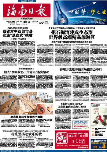 | 海南日报 头版 001 2010-09-271 2010年09月27日 星期一 |