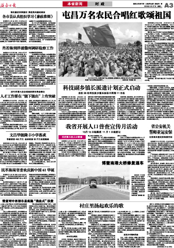 | 海南日报 本省新闻时政 003 2010-09-271 2010年09月27日 星期一 |