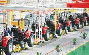 9月28日,在位于河南省洛阳市的中国一拖集团大轮拖生产车间内,举行了“中国一拖大轮拖上能力上水平技改项目落成暨重型拖拉机下线仪式”。动力换挡重型拖拉机,是“十一五”国家科技支撑计划“多功能农业装备与设施研制”项目的一项标志性成果,也是国内迄今为止最为先进的拖拉机。它的下线,结束了国际大型农机制造企业垄断动力换挡重型拖拉机的历史。 图为生产流水线正在组装动力换挡重型拖拉机。新华社发