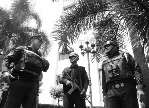 9月28日,在泰国首都曼谷,安保人员在发生爆炸的泰国总检察长办公室院内警戒。泰国警方说,泰国总检察长办公室27日晚20时左右遭到手榴弹袭击,但未造成人员伤亡。这是曼谷近一周来第四次发生爆炸事件。 新华社/路透