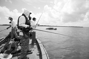 钓友姜建告诉记者,钓鱼的乐趣不在钓到多少鱼,而是享受钓鱼的过程,体会和鱼搏斗的过程。假如一条鱼一上钩,凭手感你能说出这条是什么鱼,你就能真正享受到钓鱼的快乐了。