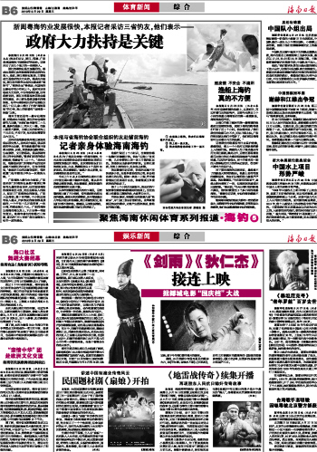 海南日报 体育新闻/娱乐新闻综合 014 2010-09-291 2010年09月29日 星期三