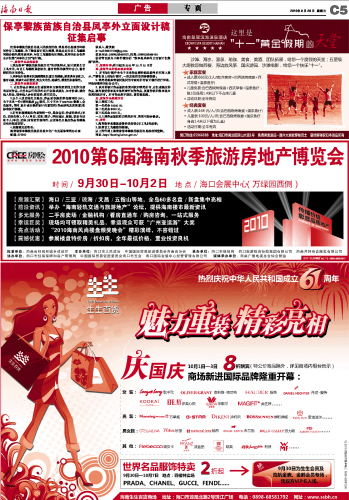 | 海南日报 广 告 专 页 021 2010-09-291 2010年09月29日 星期三 |