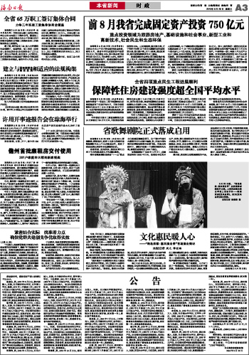 海南日报 本省新闻时政 003 2010-09-291 2010年09月29日 星期三