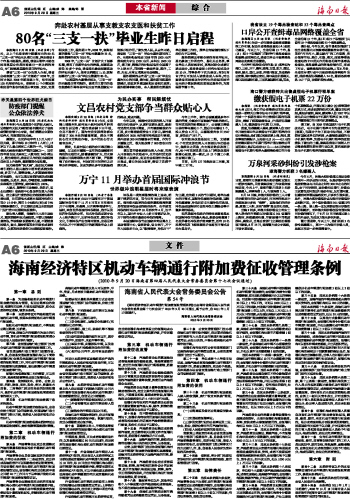海南日报 本省新闻/文件综合 006 2010-09-291 2010年09月29日 星期三