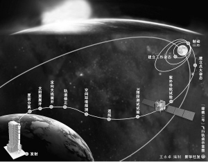 按照任务计划,卫星将由长征三号丙运载火箭送入近地点高度200公里、远地点高度约38万公里的直接奔月轨道,然后奔月飞行约112小时。当卫星到达月球附近的特定位置时,实施近月制动及轨道调整,进入100公里工作轨道。之后,卫星择机变轨,进入100公里×15公里椭圆轨道,验证轨道机动和飞行技术,拍摄后续任务虹湾预选着陆区图像,然后返回100公里圆轨道,并开展相关技术试验和科学探测。
