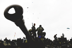 10月5日,印度尼西亚士兵在首都雅加达观看参加建军65周年庆典的伞兵表演。 当日,印度尼西亚举行活动庆祝国民军建军65周年。 新华社/法新