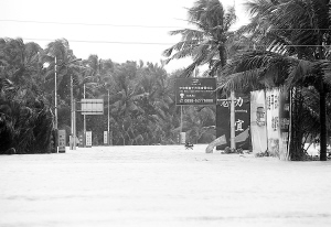 | 十月七日上午,嘉积城区通往博鳌的道路仍是一片汪洋。特约记者 蒙钟德 摄