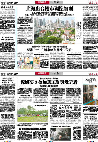 海南日报 中国新闻经济/社会 010 2010-10-081 2010年10月08日 星期五