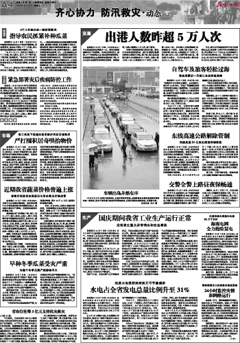 海南日报 齐心协力 防汛救灾·动态 004 2010-10-081 2010年10月08日 星期五