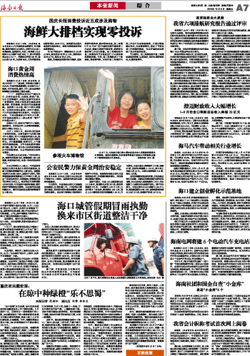 海南日报 本省新闻综合 007 2010-10-081 2010年10月08日 星期五