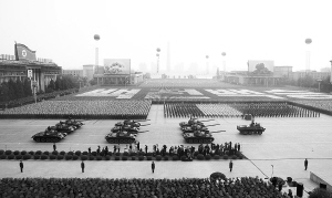 新华社平壤10月10日电(记者钱彤 赵展)为庆祝朝鲜劳动党建党65周年,朝鲜10日上午在平壤金日成广场举行盛大阅兵式。朝鲜劳动党总书记、国防委员会委员长金正日和正在朝鲜进行正式友好访问的中共中央政治局常委、中央政法委书记周永康同10万平壤各界群众一起观看。