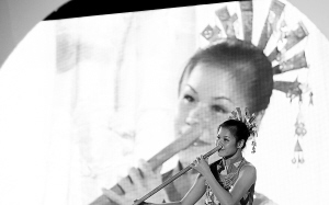 | 开幕式上演员在表演黎族鼻箫。