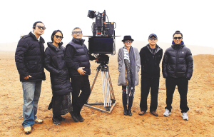 | 徐克(左三)周迅(右三)李连杰(右二)陈坤(右一)在开机仪式上 |