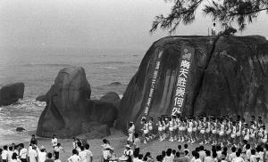 | 1990年8月23日,天涯海角风景区焦岭上的亚运会南端点火台。