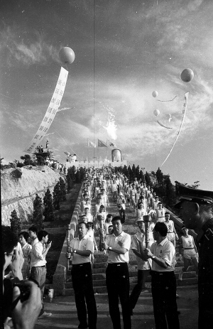 | 1990年8月23日,三亚南端点火台圣火点燃,随后,亚运会火炬沿东、中、西三路传递。 武进群 摄 |