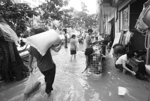 | 10月10日,洪水慢慢退去,文昌市的受灾群众纷纷返回家园开始自救。 本报记者 苏晓杰 摄 |