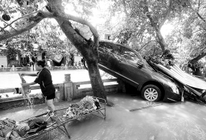 尽管洪水消退,但是灾后的工作仍然繁重,洪水留给人们的是厚厚的淤泥、满地的垃圾、毁坏的公共设施以及泡坏的商品、货物。今天早上,记者在现场看到,文城路面上沉积的淤泥最厚达二三十厘米,树枝杂草遍地,道路两旁的店铺已经面目全非,很多店铺没有来得及转移的货物、商品散落一地,不少已经被泡坏,街道上的交通标识牌、护栏等公共设施也遭到了严重损毁。最令人触目惊心是,在庆龄路好几辆小轿车、大货车被洪流掀了个四脚朝天,不下百辆汽车被泡坏,整个文城一片狼藉。