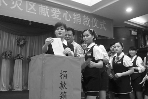 | 10月10日,龙泉集团员工为灾区捐款15万多元。图为海南龙泉集团下属企业龙泉渔村的员工为灾区捐款。 本报记者 陈德雄 摄