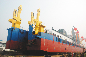 我国首艘自主知识产权海洋疏浚工程船舶顺利下水