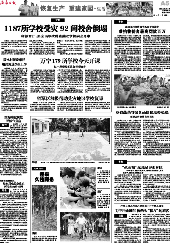 | 海南日报 恢复生产 重建家园·生活 005 2010-10-111 2010年10月11日 星期一 |